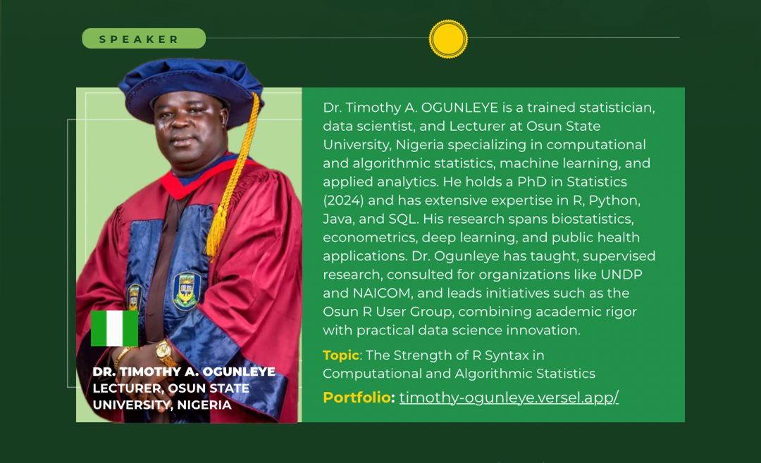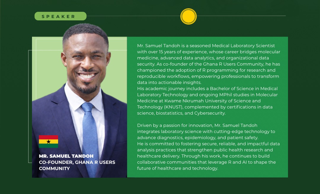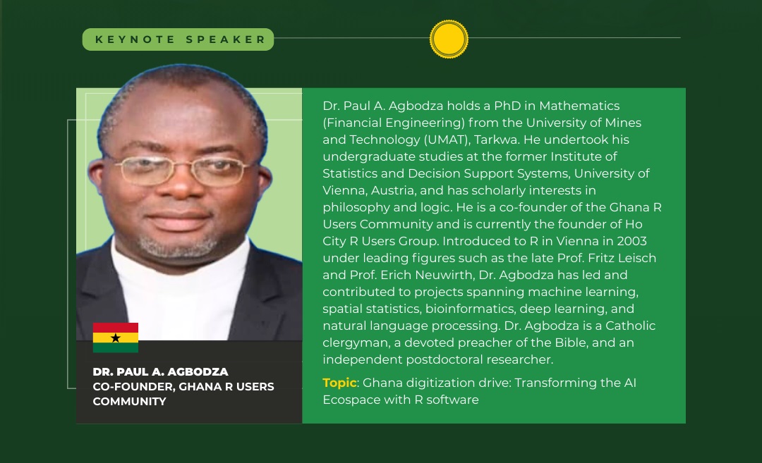 As Ghana continues its journey toward a digitally empowered future, the role of R as a tool for data science, machine learning, AI, and evidence-based decision-making has never been more important. This conference provides a unique national platform to explore how R is being used to build intelligent systems, shape policy, support industry transformation, and enable academic and research excellence across sectors.